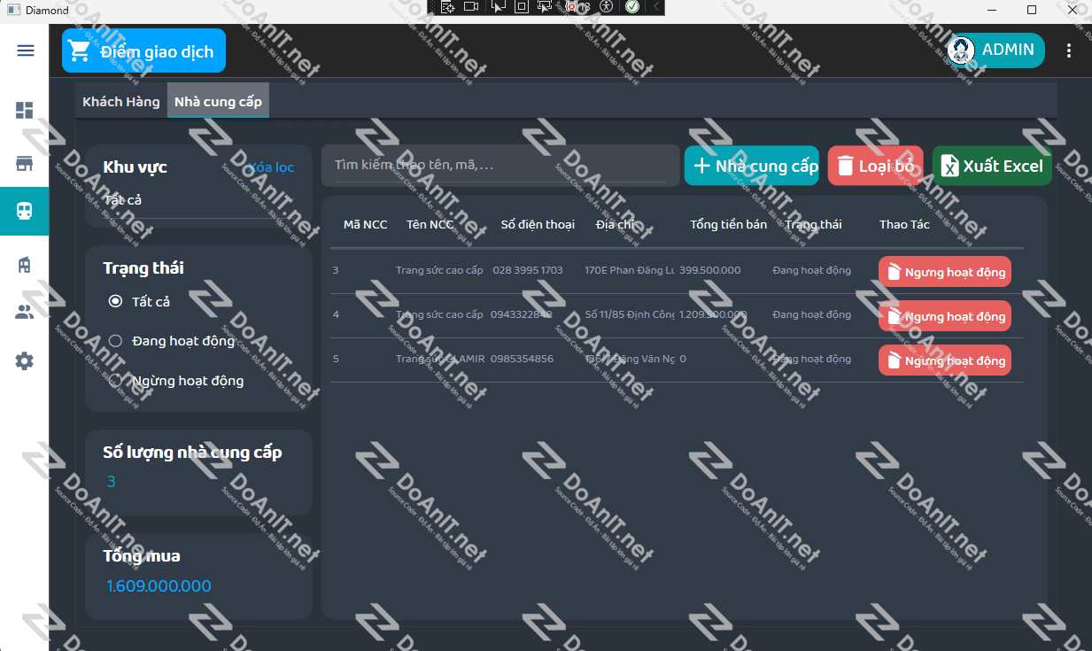Theo dõi thông tin nhà cung cấp, lịch sử giao dịch, hàng nhập.