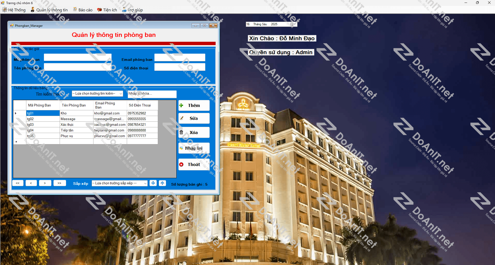 ✅ Quản lý phòng ban: Tổ chức các bộ phận như lễ tân, buồng phòng, kế toán… và quản lý thông tin liên quan.