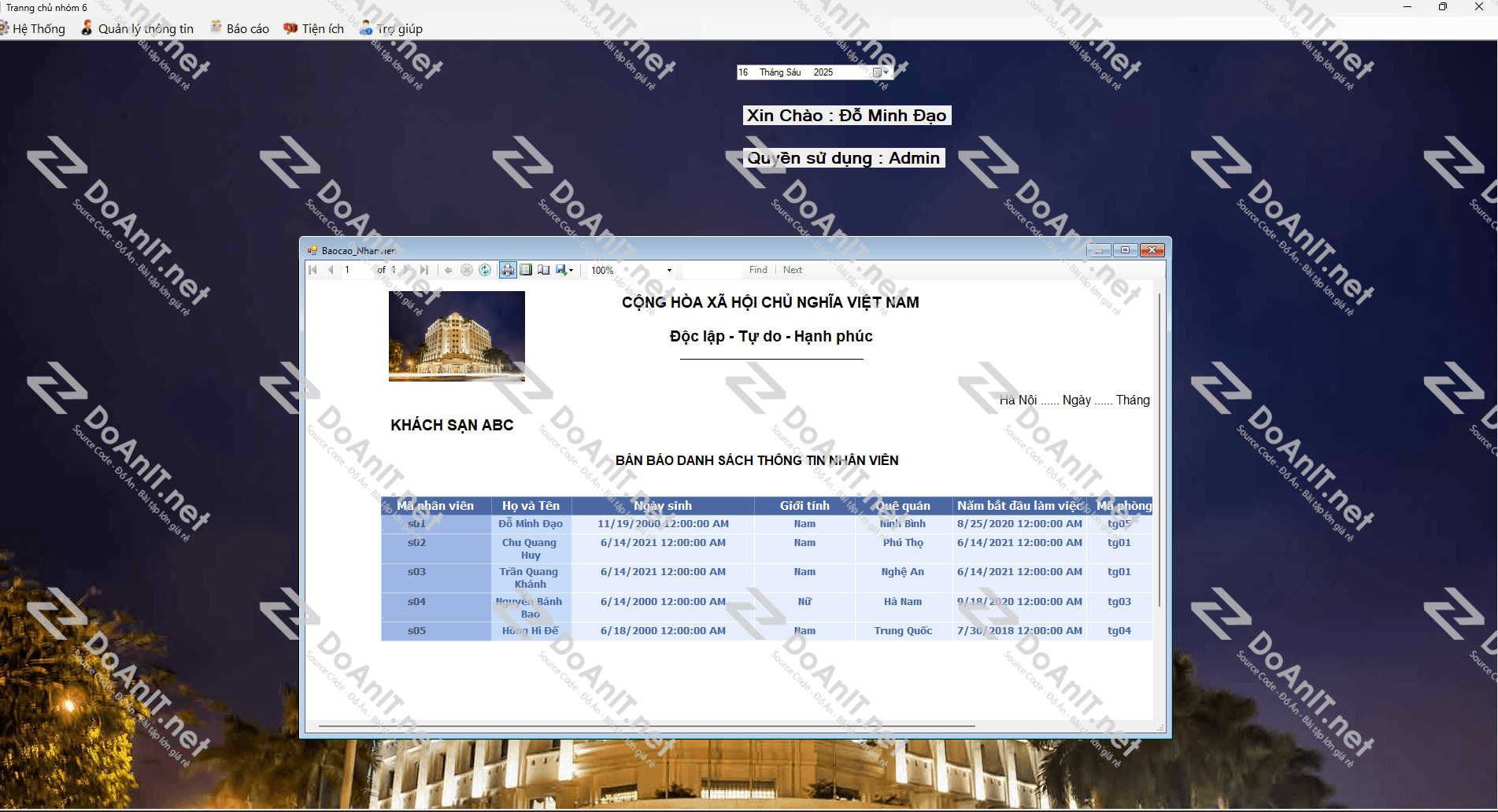 Đồ Án C# Winform Phần Mềm Quản Lý Khách Sạn