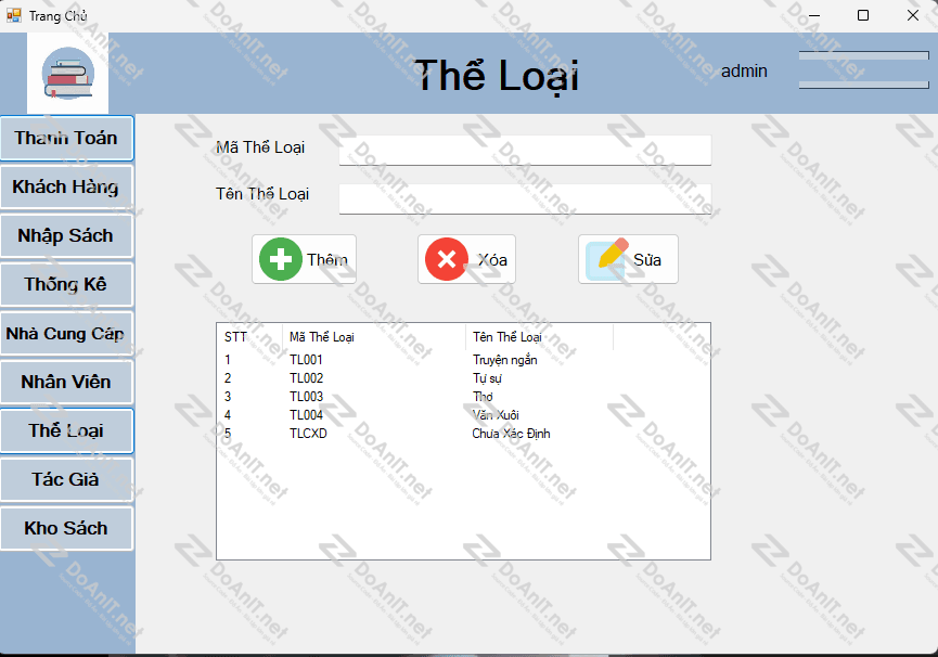 Quản lý thể loại: Quản lý danh mục thể loại sách để phân loại và lọc sách nhanh chóng.