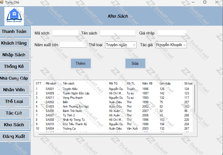 Đồ Án C# Winform Phần Mềm Quản Lý Nhà Sách