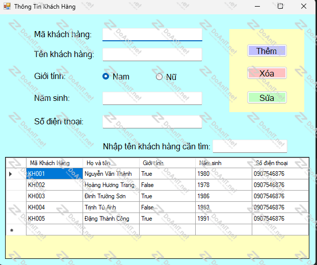– Lưu trữ và tìm kiếm thông tin khách hàng như họ tên, số điện thoại, địa chỉ.
