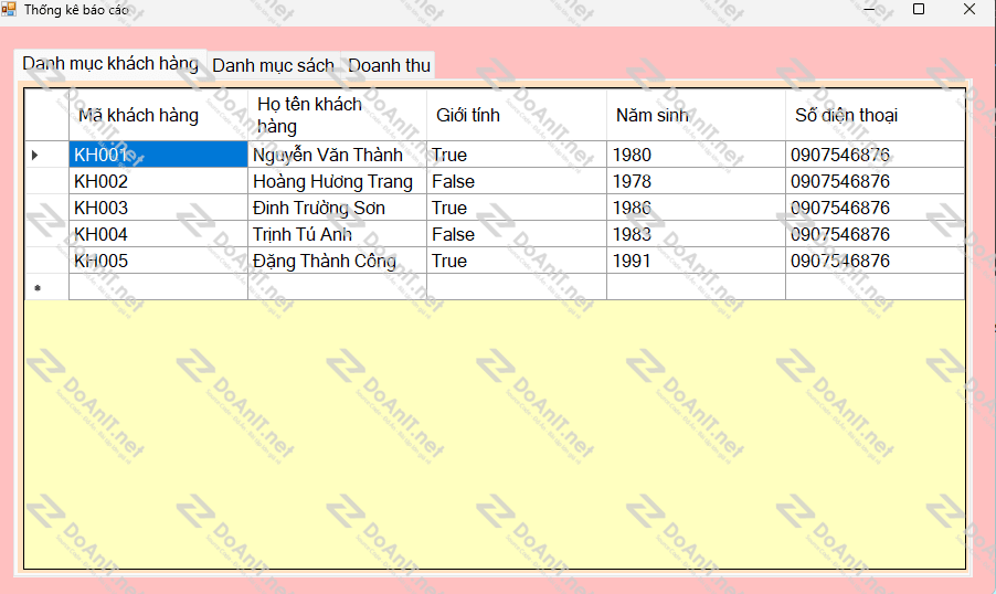 – Thống kê doanh thu theo ngày, tháng, quý.
